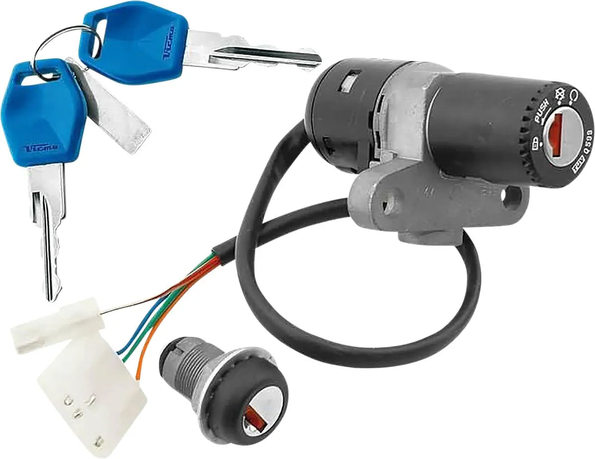 This complete lock and key set from 101 Octane allows you to replace damaged or worn ignition, fuel cap, or seat locks with a reliable alternative. Designed as a direct replacement, the 101 Octane Lock Set offers straightforward installation and restores your motorcycle's security. Ensure that your motorcycle remains protected with this comprehensive lock and key replacement kit. Includes two new keys for added convenience. Keep your motorcycle secure with this essential replacement part, guaranteeing peace of mind and proper function.