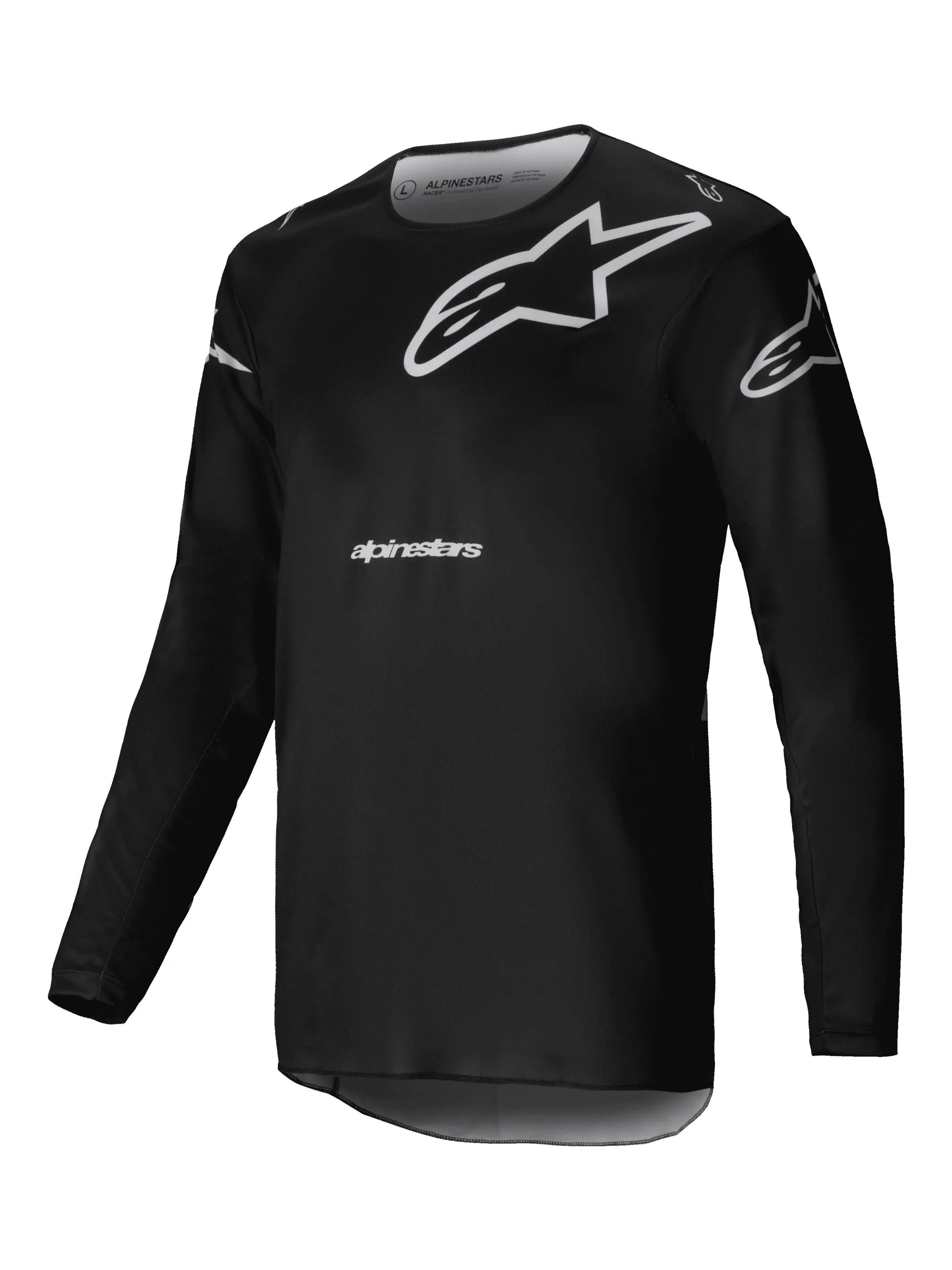 Experience superior comfort and performance with the Alpinestars Racer Graphite Jersey. The advanced, multi-material poly fabric construction provides a lightweight, moisture-wicking chassis that keeps you dry and comfortable. Breathable stretch mesh inserts are strategically positioned under the arms to enhance airflow and freedom of movement. The racer fit and pre-curved pattern offer superior mobility and an enhanced range of motion, allowing you to tackle any terrain with ease. With its longer cut in the rear, the jersey provides greater coverage while riding. Overlock stitching ensures added durability, with fitted wrist cuffs that offer an optimized fit. The stretch collar neck enhances comfort with a relaxed and open feel. The Racer Graphite Jersey is designed to match the rest of the Racer gear line, offering a complete performance look and feel.
