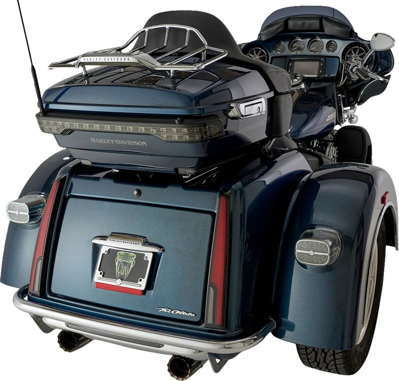 The Ciro Calade™ Tail Lights feature a vibrant red main lens and a subtly smoked reverse lens, adding a touch of modern aesthetics to your bike. Each light is equipped with 104 red LEDs for running, turn, and brake functionality, ensuring maximum visibility to other drivers. The 24 high-powered white LEDs dedicated to the reverse light provide exceptional brightness when backing up. Installation is a breeze with the pre-applied 3M VHB adhesive and plug-and-play design, allowing you to get back on the road quickly. Enhance your safety and style with these high-quality LED tail lights.