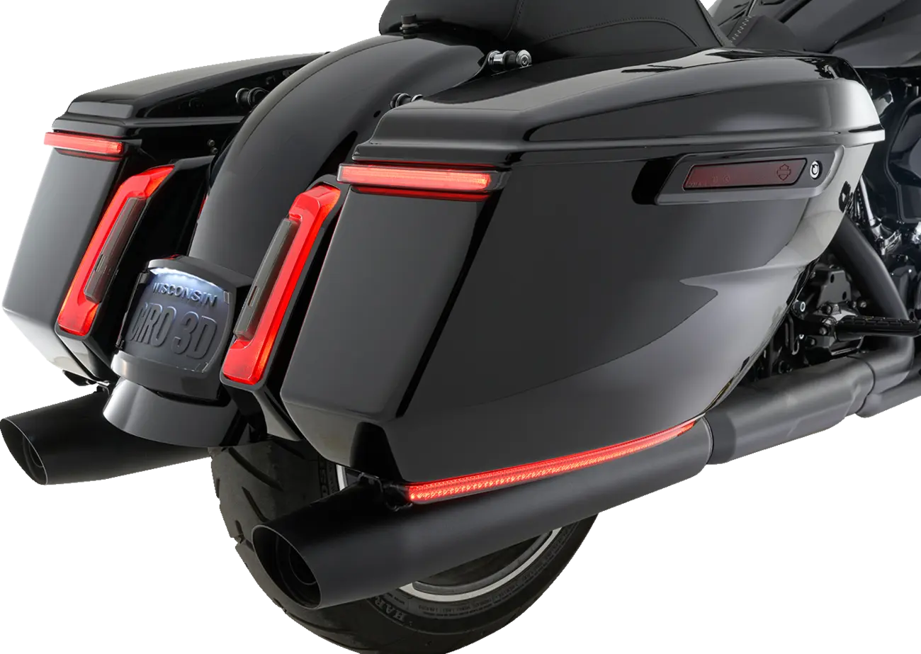 The Ciro Machete™ LED Lights feature run, turn, and brake dual-function LEDs for maximum visibility. The high-strength polycarbonate lenses are durable and designed to withstand the rigors of the road. Installation is a breeze, requiring no drilling, thanks to the pre-applied 3M VHB adhesive. These lights are designed for easy Plug-and-Play installation with Standard Harness part # 2120-1418 or Lightstrike COMMANDER™ part # 2050-0551 (sold separately). When paired with the Lightstrike COMMANDER™, you can unlock a choice of different modes and animations, as well as activate amber turn signals for even greater visibility and customization. Increase safety and style with these high-quality LED lights. Enhance your Harley Davidson’s presence on the road with the Ciro Machete™ LED lights.