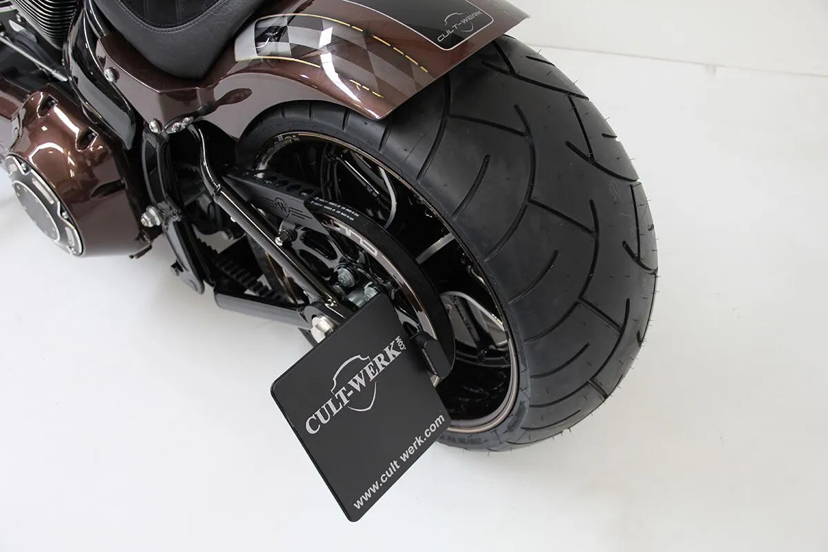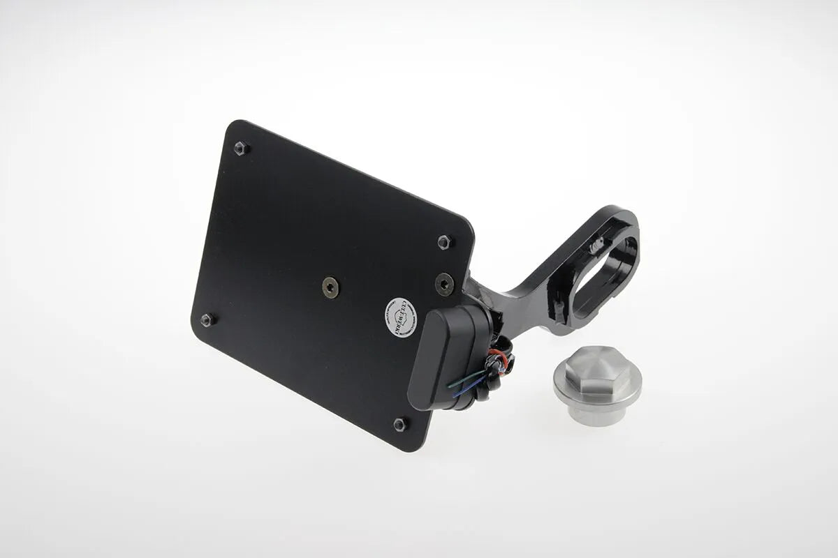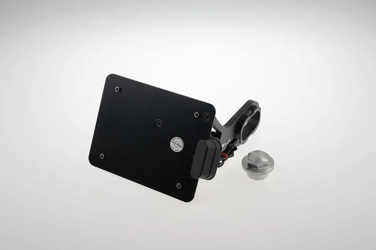 The Cult Werk License Plate Holder enhances your motorcycle's style while providing a secure and compliant mounting solution. Constructed from robust steel and finished with a durable black powder coat, this license plate holder resists corrosion and wear. The CNC-lasered construction guarantees a precise fit and clean lines. This holder includes an LED license plate light with an E-test mark, ensuring visibility and regulatory compliance. Installation is straightforward, making it an ideal upgrade for both DIY enthusiasts and professional mechanics. Enhance the rear profile of your ride with the Cult Werk License Plate Holder, combining form and function for a standout appearance. Secure your license plate with style and confidence using this premium quality holder. Perfect for motorcycle customization projects.