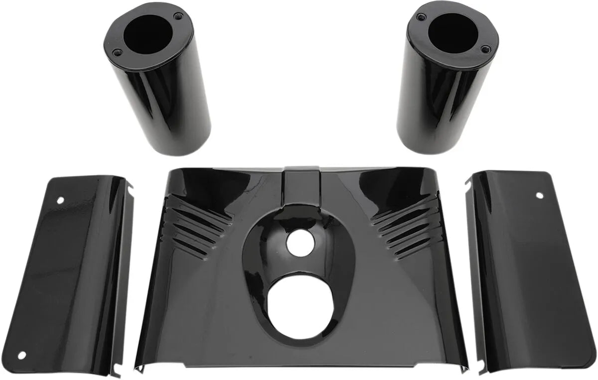 These fork tins are designed to replicate the original factory appearance while offering improved durability. Perfect for restoration projects or simply upgrading worn or damaged fork covers. The gloss black finish adds a sleek, custom touch to your motorcycle's front end. Easy to install, these fork tins provide excellent protection for your fork sliders, keeping them clean and functioning smoothly for miles to come. If your motorcycle is equipped with front passing lights, a hole may need to be drilled in the rear panel for the on/off switch. Sold as a set for both sides of the front fork.Features & highlights