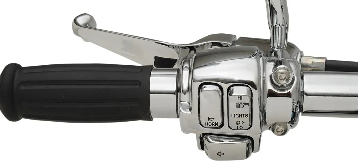 The Drag Specialties Handlebar Control Kit with Mechanical Clutch offers a complete solution for upgrading your motorcycle's handlebar controls. The kit includes a master cylinder assembly, clutch lever assembly, and die-cast switch housings with radiused edges for a comfortable feel. Designed with OEM-style clamps for secure mounting, this kit provides reliable performance and a custom appearance. The master cylinder is compatible with OEM-style rebuild kits, ensuring easy maintenance and longevity. Note that this kit is not compatible with models equipped with cruise control.