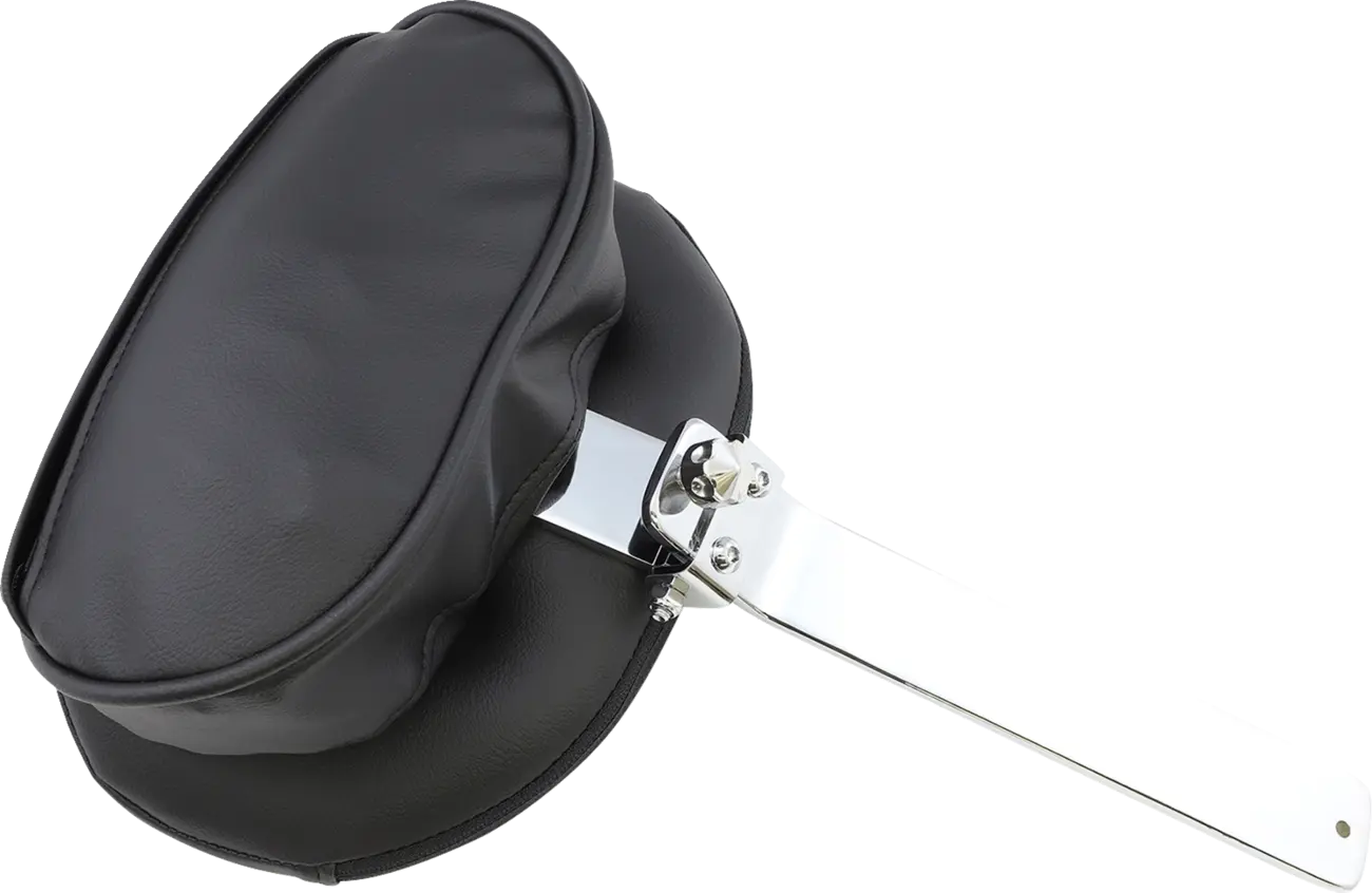 The Drag Specialties Tall Backrest Pad provides enhanced comfort with its pivoting pad and a tall, supportive design. The included high-quality, polished, and chrome-plated 9.75" tall detent bar allows for 2" of fore-aft adjustment, ensuring a perfect fit for any rider. The pad conveniently folds forward, making it easier to get on and off your motorcycle. The integrated pouch provides a handy storage solution for small essentials. The EZ Glide™ receiver mechanism makes mounting your choice of pad assembly simple and secure.
