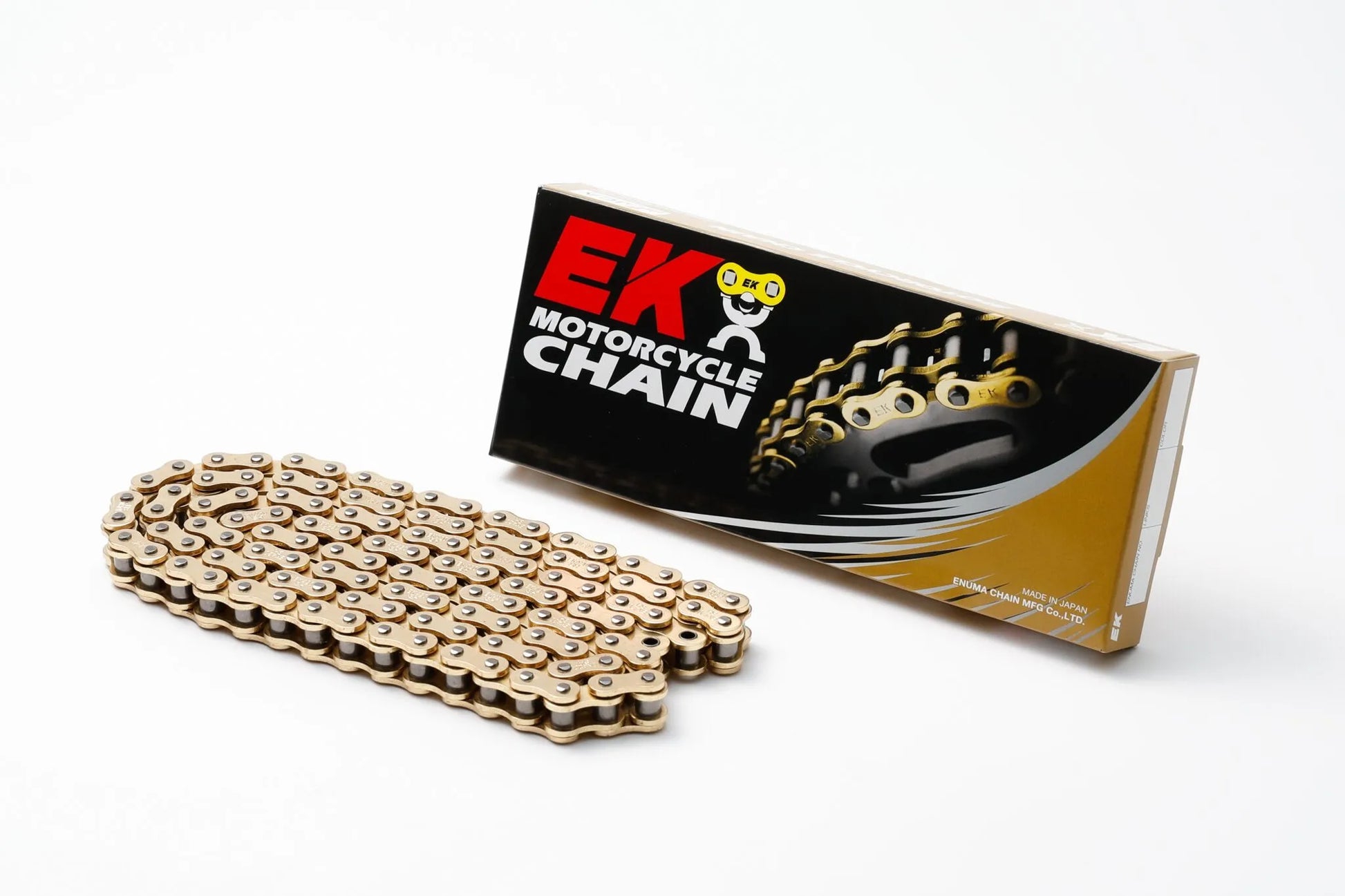 This EK 420 SH drive chain stands out due to its innovative CRH pin treatment. This advanced process creates an exceptionally hard Chromium Carbide outer layer while maintaining a softer core. This unique combination enhances strength and minimizes chain wear, resulting in a longer-lasting and more dependable drive chain. The Chromium Carbide surface coating also provides excellent impact and shock absorption, effectively reducing oxidation from environmental factors. Ideal for off-road motorcycles with up to 100cc engine displacement, this chain ensures optimal performance and longevity. Easy to install with the included clip connecting link.
