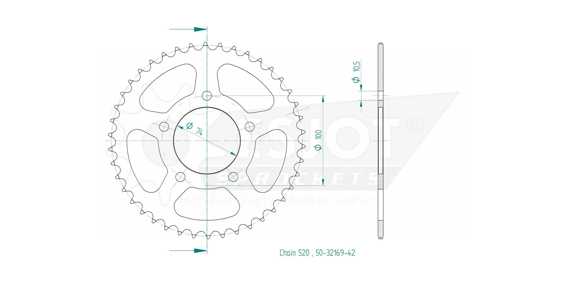 The Esjot Rear Sprocket is designed to meet and exceed OEM standards, setting a new benchmark for quality. Constructed from high-strength QSTE460 steel and finished with a specialized coating, this sprocket offers unmatched durability and resistance to wear. The precision-toothed design, achieved through the advanced Diamond Cut 2.0 process, ensures optimal power transmission and reduced chain wear. With concentricity and axial run-out tolerances of less than 0.1 mm, you can rely on smooth and efficient performance every time. Proudly 100% Made in Germany, this Esjot 520 sprocket is the ultimate upgrade for discerning riders.