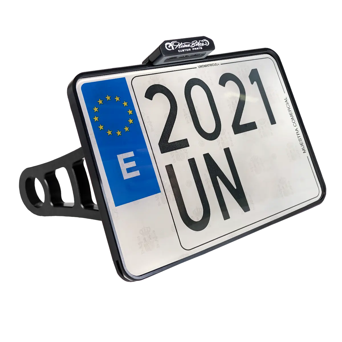 The Heinz Bikes License Plate Side Mount provides a modern and stylish solution for relocating your license plate. Utilizing Heinz Bikes' innovative SLIP-IN frame technology, installation is simplified, achieving a clean, screw-less aesthetic. The integrated LED indicator lights are housed in a sleek aluminum casing, ensuring high visibility while maintaining a low profile. Internal cable routing keeps wiring hidden, further enhancing the streamlined appearance. Constructed from high-quality CNC-machined aluminum, this side mount features a stable arm with anti-twist technology, guaranteeing secure attachment to the swing arm. Installation is made easy with all necessary mounting hardware and axle nuts included.