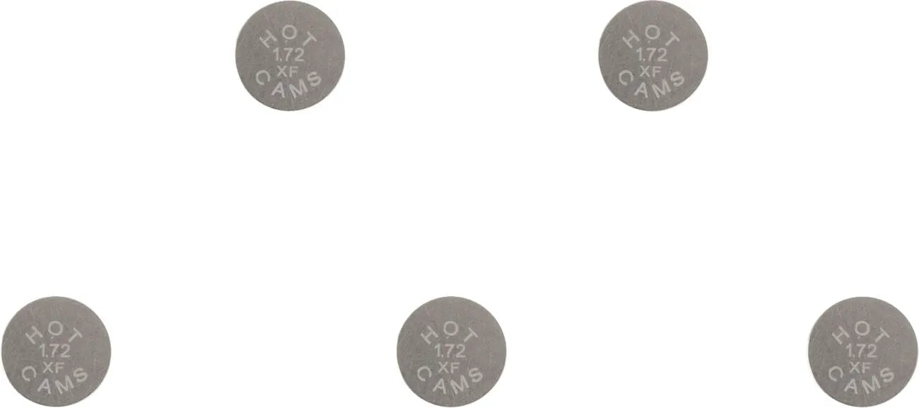 Keep your valve train in top condition with Hot Cams 1.72mm valve shims. These shims are essential for maintaining proper valve clearance, ensuring optimal engine performance and longevity. This 5-pack of high-quality steel shims provides a convenient and reliable solution for valve adjustments.