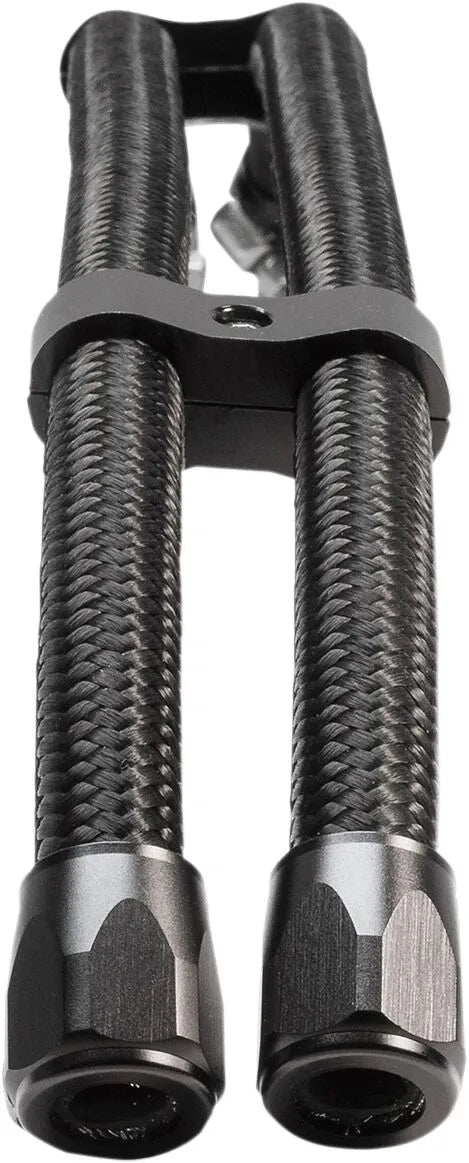 The Jagg Oil Coolers Oil Hose Upgrade Kit features performance braided oil hoses sourced directly from Susa's motorsport division, ensuring top-tier quality and reliability. The kit allows for straightforward installation: simply measure and trim the hose to the necessary length, slide the aluminum hose finishers over the ends, connect the hose to the nipple, and secure with the included worm-drive clamps. This simple process delivers a beautiful and functional upgrade, enhancing both the look and performance of your motorcycle. Crafted with precision in the USA, this kit is engineered to meet the rigorous demands of high-performance riding.
