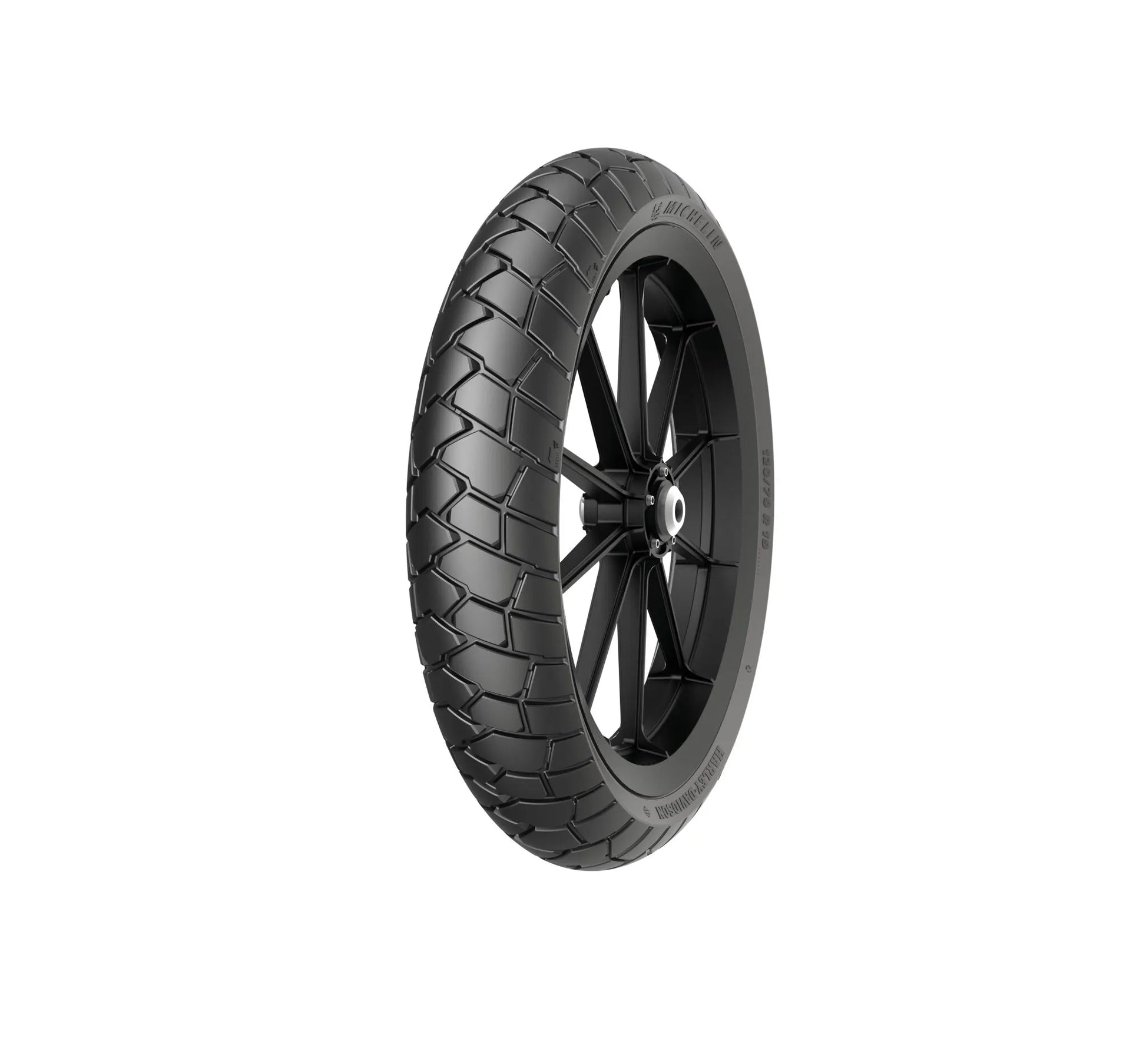 Experience a new level of on-road stability thanks to the integration of MICHELIN Bridge Block Technology™ and Michelin 2CT+ Technology™ in the rear tire. Michelin's innovative 2CT and 2CT+ technology, combined with an all-new tread pattern and optimized profile, ensures precise handling and consistent performance mile after mile. The fully grooved geometric tread pattern delivers uncompromising off-road traction, providing the confidence you need to tackle any terrain. The 120/70R19 Michelin Scorcher Adventure front tire will enhance your riding experience, offering a perfect balance of stability, handling, and traction for both on and off-road adventures.