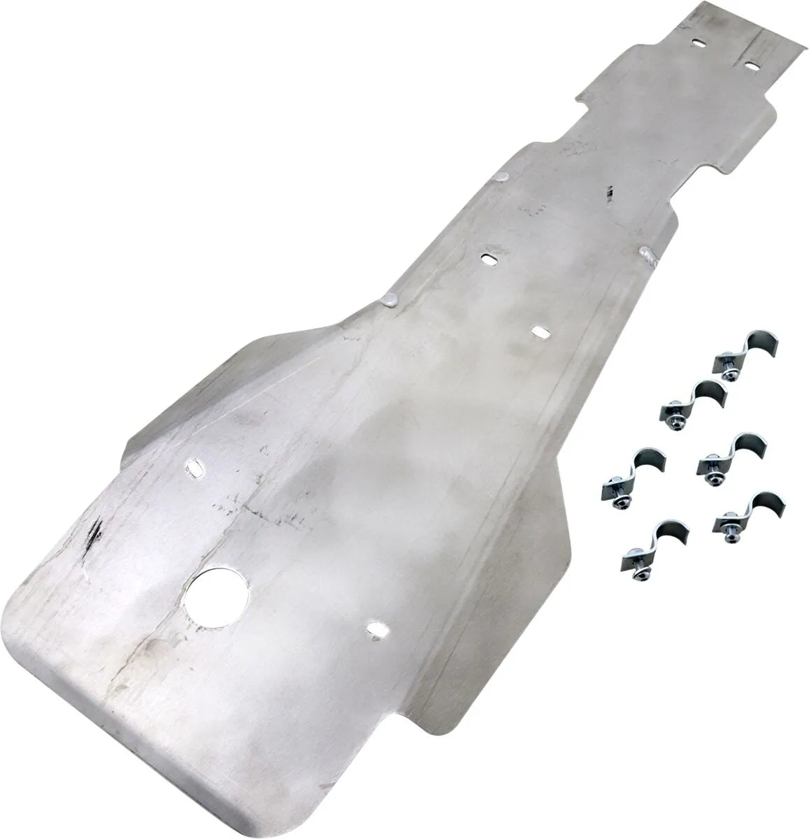 The Moose Offroad Full Body Skid Plate is engineered to withstand the rigors of off-road riding. Constructed from durable aluminum with a clear anodized finish, this skid plate offers exceptional strength and corrosion resistance. Installation is a breeze, as it securely mounts using either the stock mounts, the included heat-treated chromoly steel clamps, or a combination of both – ensuring a rock-solid attachment. Best of all, no drilling or modifications are ever required, making it a simple and effective upgrade. This full body skid plate offers full coverage, giving you peace of mind on any terrain. Made in the USA, you can trust the quality and craftsmanship of this essential off-road accessory.Features & highlights