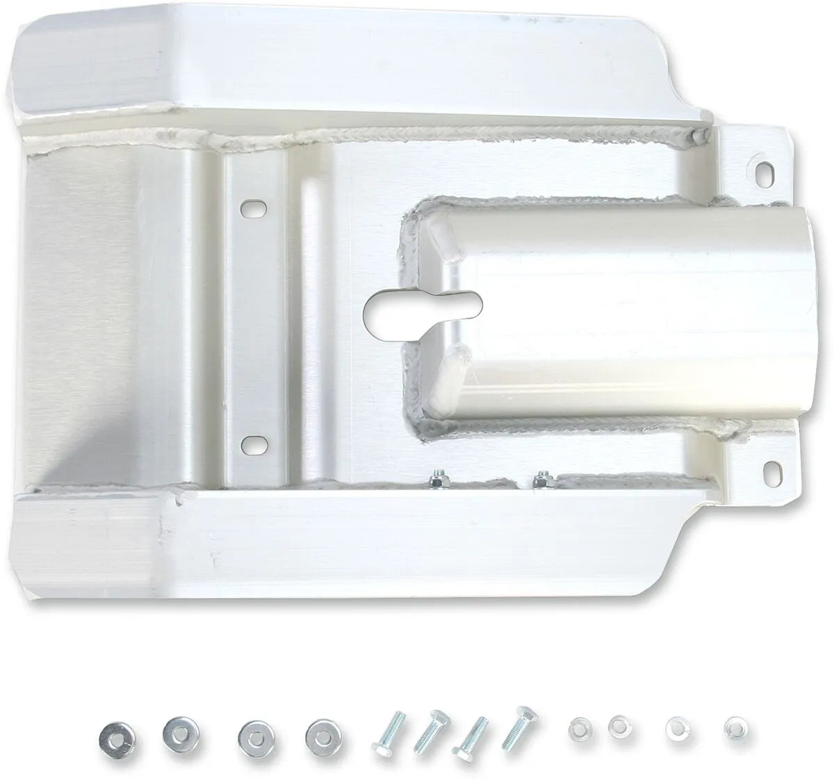 The Moose Offroad Heavy Duty Swingarm Skid Plate is engineered to withstand the harshest conditions. Fabricated from 1/4" extruded 6061-T6 aluminum in high-impact areas, this skid plate provides exceptional strength and protection for your ATV's swingarm. The integrated, long-wearing chain guide ensures smooth chain operation and extends its lifespan. A clear anodized finish adds corrosion resistance and a sleek look. Installation is straightforward, utilizing either the stock mounts or the included tough heat-treated chromoly steel clamps, or a combination of both, without requiring any drilling or modifications. Ride harder and longer with the confidence that your ATV is protected by this heavy-duty skid plate.