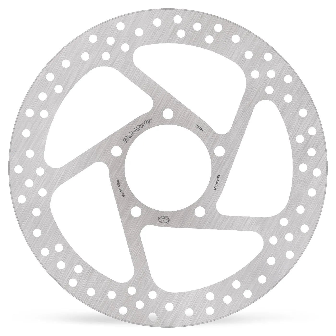 The Moto-Master Halo Series Fixed Rotor represents the standard in aftermarket brake rotors. Crafted from premium quality stainless steel, the outer ring is laser-cut and precision-ground for optimal performance and longevity. The strategically sized and positioned venting holes ensure even heat dispersion, preventing brake fade under high thermal stress. This design keeps the brake pad contact surface clean, maximizing braking efficiency and maintaining a consistent feel. The rotor's fixed, one-piece construction enhances rigidity and provides reliable performance on every ride. Upgrade to the Halo Series and experience enhanced braking confidence and control.