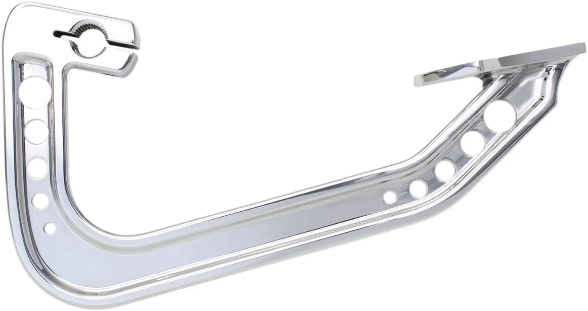 The Stealth Heel Shift Lever provides full access to the floorboard area by eliminating the traditional shift peg. This innovative design ensures a comfortable and unrestricted riding experience. Installation is quick and easy, allowing you to enjoy the benefits of this upgrade in no time. Designed for seamless integration, it works perfectly with both Bagger Nation Wedgy floorboards and OEM floorboards, providing versatile compatibility. Upgrade your motorcycle with the Paul Yaffe Bagger Nation Stealth Heel Shift Lever and experience the difference in performance and style. Experience smoother, more precise shifting with this high-quality, American-made upgrade. The chrome finish ensures a durable and stylish look that complements your bike's aesthetics. It's the perfect combination of form and function.