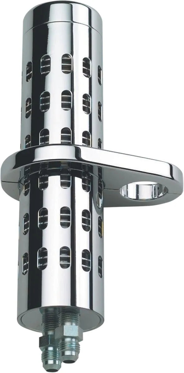 The Pro-One Perf.Mfg. Oil Cooler Kit is engineered to provide superior cooling efficiency, contributing to enhanced engine reliability and consistent performance. Its robust construction from CNC-machined billet aluminum guarantees durability and resistance to the rigors of the road. The chrome finish offers a sleek, custom look. Designed for easy installation on frame tubes ranging from 1" to 1-1/4", this kit includes all necessary clamps and reducers for a secure and precise fit. The AN #6 fittings ensure compatibility with standard -6 lines commonly available at speed shops, simplifying the connection process. This kit is a must-have for riders seeking to optimize their engine's cooling system and maintain peak performance.