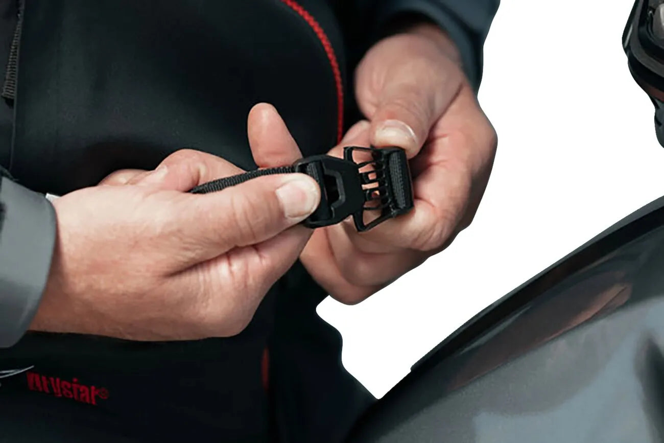 - Adjustable carrying system with padded shoulder straps and quick-lock belt.