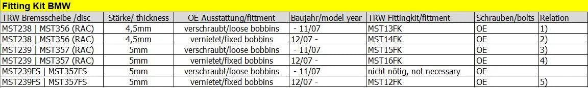 Ensure optimal performance and secure installation of your brake rotors with the TRW MST12FK Fitting Kit. This comprehensive kit provides all the necessary components for a proper and safe brake rotor replacement. Designed for durability and precision, the TRW fitting kit is an essential addition to any brake service.