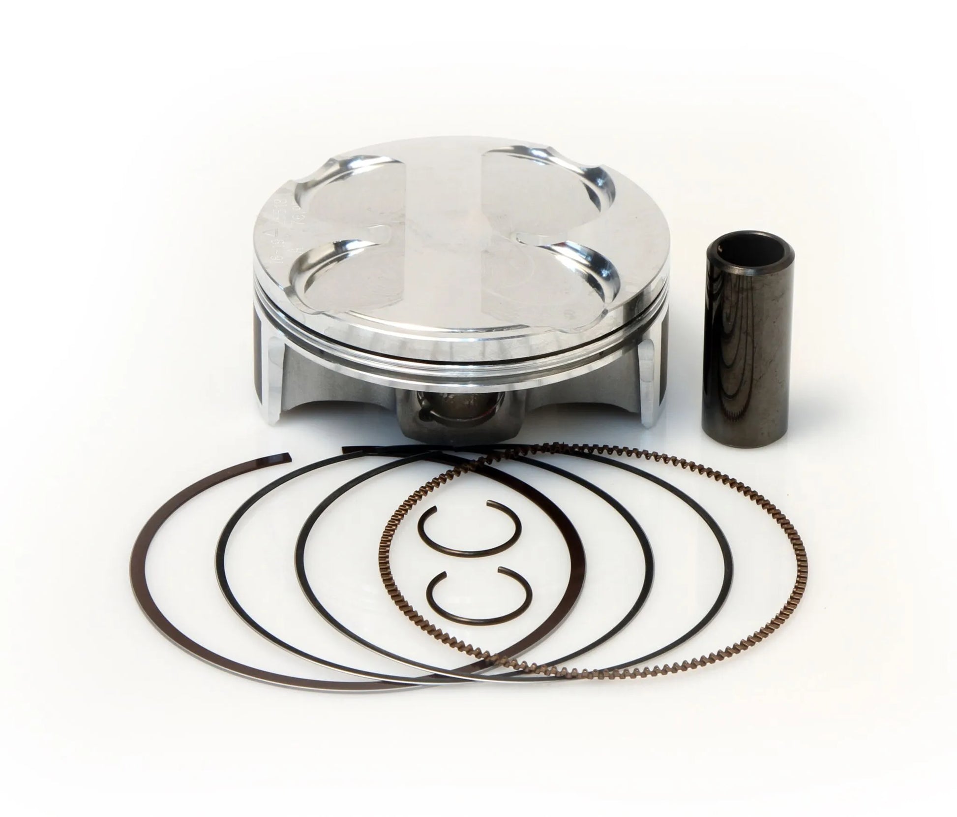 The Vertex Forged Replica Piston Kit features a forged piston crafted from 2618 aluminum, known for its exceptional strength and durability. Each piston undergoes a T-5 heat treatment, hardening and tempering cycle to further enhance its structural integrity. The piston skirt is coated with a Molybdenum Disulphite coating, promoting faster break-in times and extending the piston's lifespan. Designed as an OE replacement, this kit guarantees a precise fit and reliable performance. This piston kit is ideal for enthusiasts and professionals seeking to maximize engine performance and reliability. The 13.5:1 compression ratio helps optimize your 250cc engine's power output.