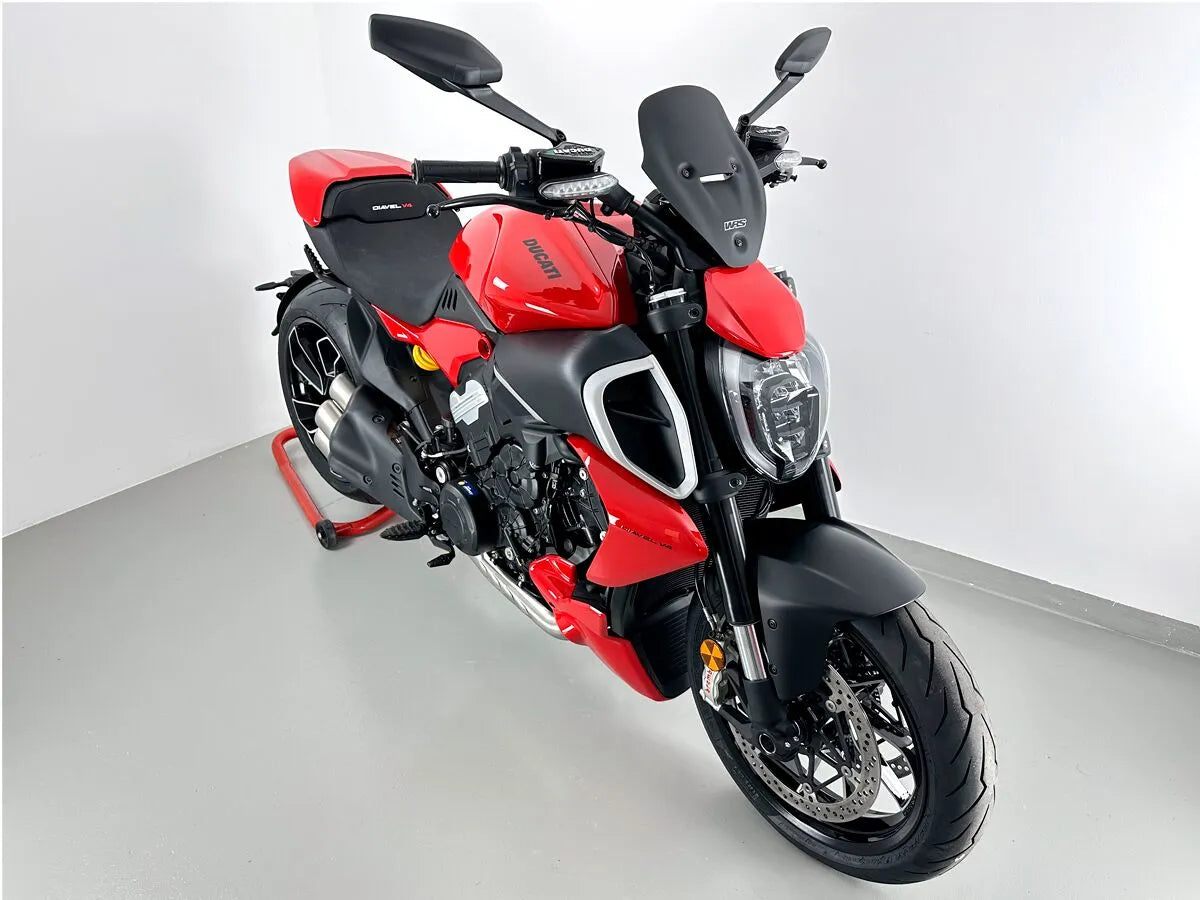 The WRS Windscreen is engineered to eliminate annoying turbulence around the shoulders and helmet, significantly improving rider comfort on long journeys. Its aerodynamic design seamlessly integrates with the bike's lines, enhancing its overall appearance with a sleek, modern look. This windscreen provides greater protection from wind and debris, making your ride more enjoyable and safer. Easy to install and specifically designed for naked bikes, the WRS Windscreen is the perfect addition for riders seeking both functionality and style. Enhance your motorcycle's performance and aesthetics with this premium windscreen, offering improved aerodynamics and a visually appealing design.