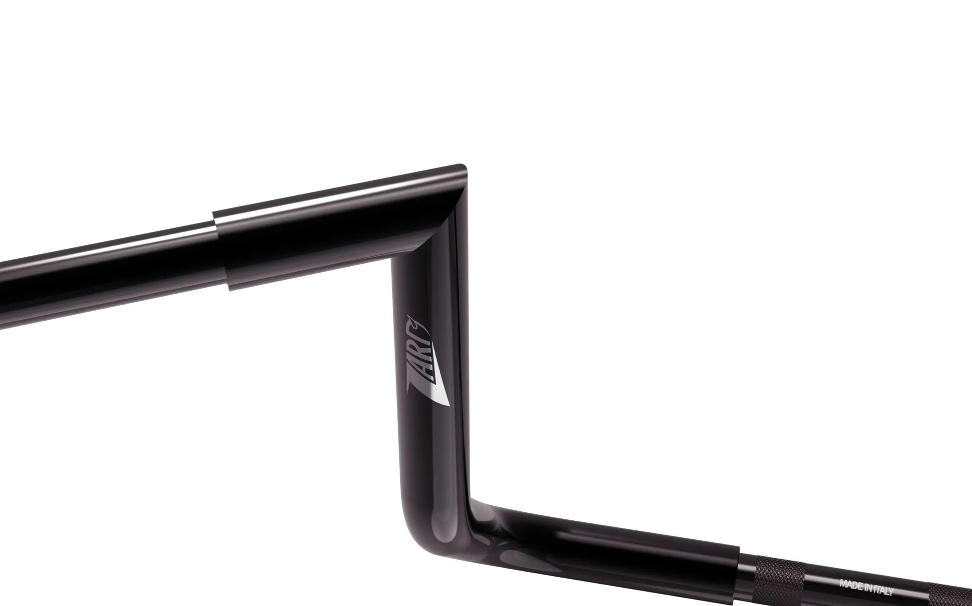 Crafted in Italy by the “Centro Stile Zard,” the Bat Handlebar is manufactured from high-quality steel, ensuring exceptional durability and resistance to the elements. Its ergonomic design promotes a natural and comfortable riding position, giving you superior control in every riding scenario. The black chrome finish not only adds a touch of sophistication but also provides a unique reflective quality that highlights the handlebar's sleek lines and curves. Measuring 36" in width and 12" in height, with a 9" pullback/sweep, this handlebar transforms your Harley-Davidson® into a personalized masterpiece. The 1-1/4" diameter provides a solid, confident grip.