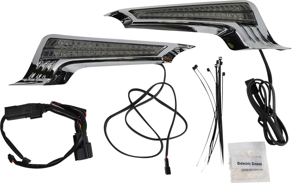 - Chrome housing and smoke lens offer a stylish and modern appearance.