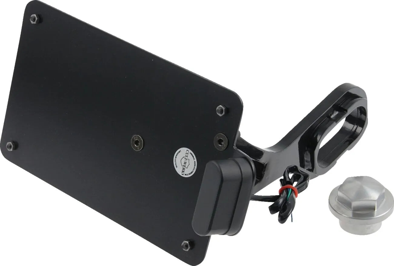 Upgrade your motorcycle's aesthetics with the Cult Werk License Plate Holder. Crafted from premium steel, this holder provides a sleek and durable solution for mounting your license plate. The black powder-coated finish adds a touch of elegance while ensuring long-lasting resistance to the elements.