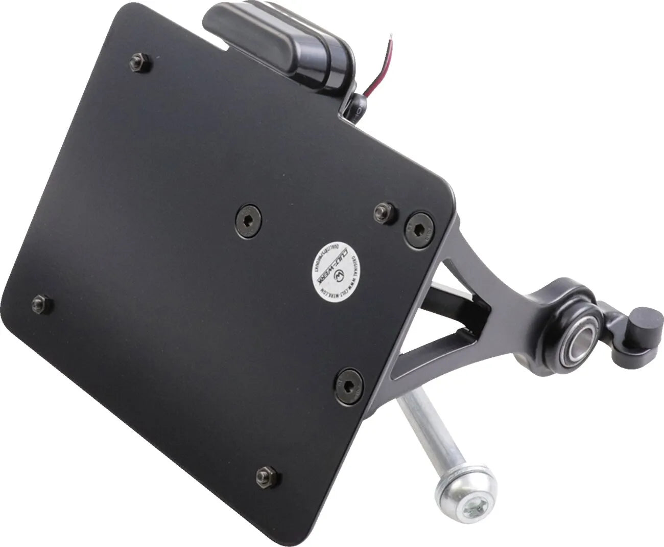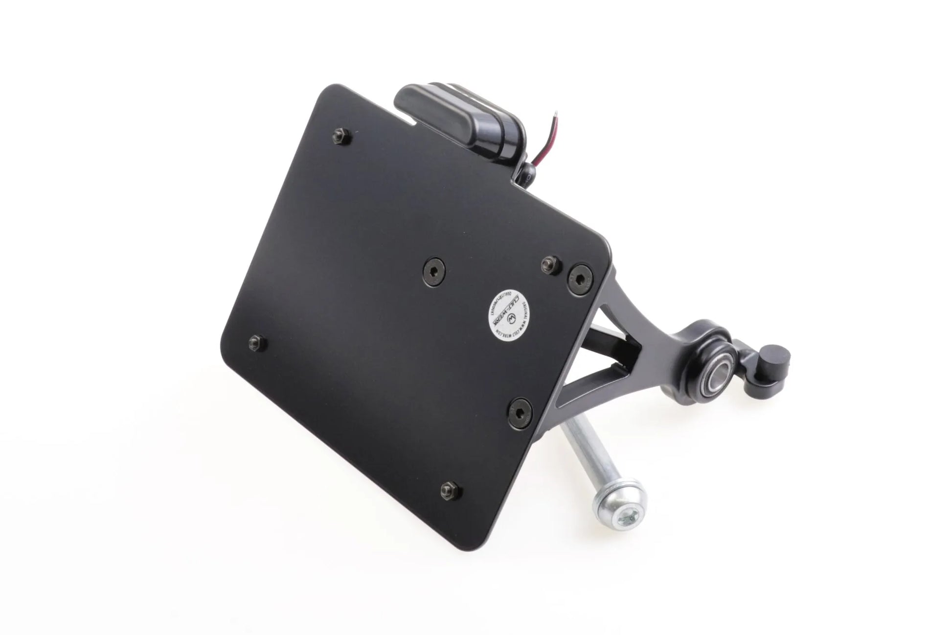 Crafted from premium steel, the Cult Werk License Plate Holder is CNC lasered for precision and then powder-coated in black for a long-lasting, corrosion-resistant finish. This ensures the holder can withstand the rigors of the road while maintaining a clean, modern look. The included LED license plate lighting features an E-test mark, guaranteeing compliance with legal requirements and providing excellent visibility in all conditions. Easy to install, this license plate holder is a perfect blend of form and function, designed to meet the needs of motorcycle enthusiasts and professionals alike. Improve the rear end of your motorcycle with this durable and stylish license plate solution. Get yours today!