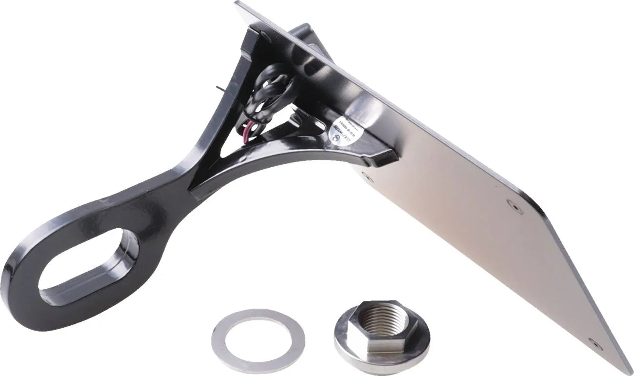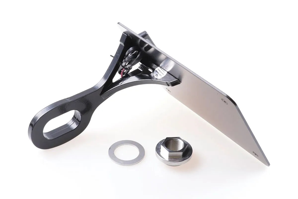 Upgrade your motorcycle's rear end with the Cult Werk License Plate Holder. This high-quality holder provides a sleek, modern look while ensuring your license plate is securely mounted and properly illuminated. Constructed from durable materials and finished with a stylish black powder coat, this license plate holder is built to last and designed to impress.