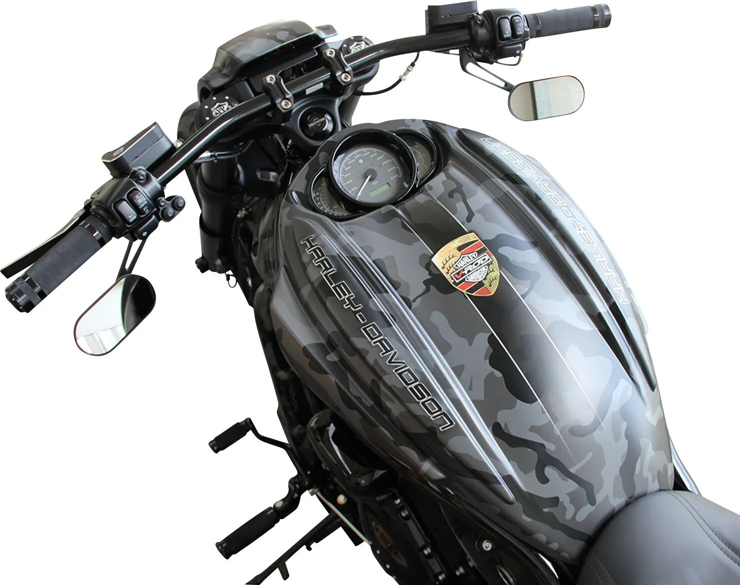 Upgrade your Harley's style with this Cult Werk Mirror Set. Finished in sleek black, these mirrors not only enhance your bike's aesthetics but also provide optimal glare protection thanks to their tinted mirror glass. This set offers a custom look that sets your motorcycle apart.