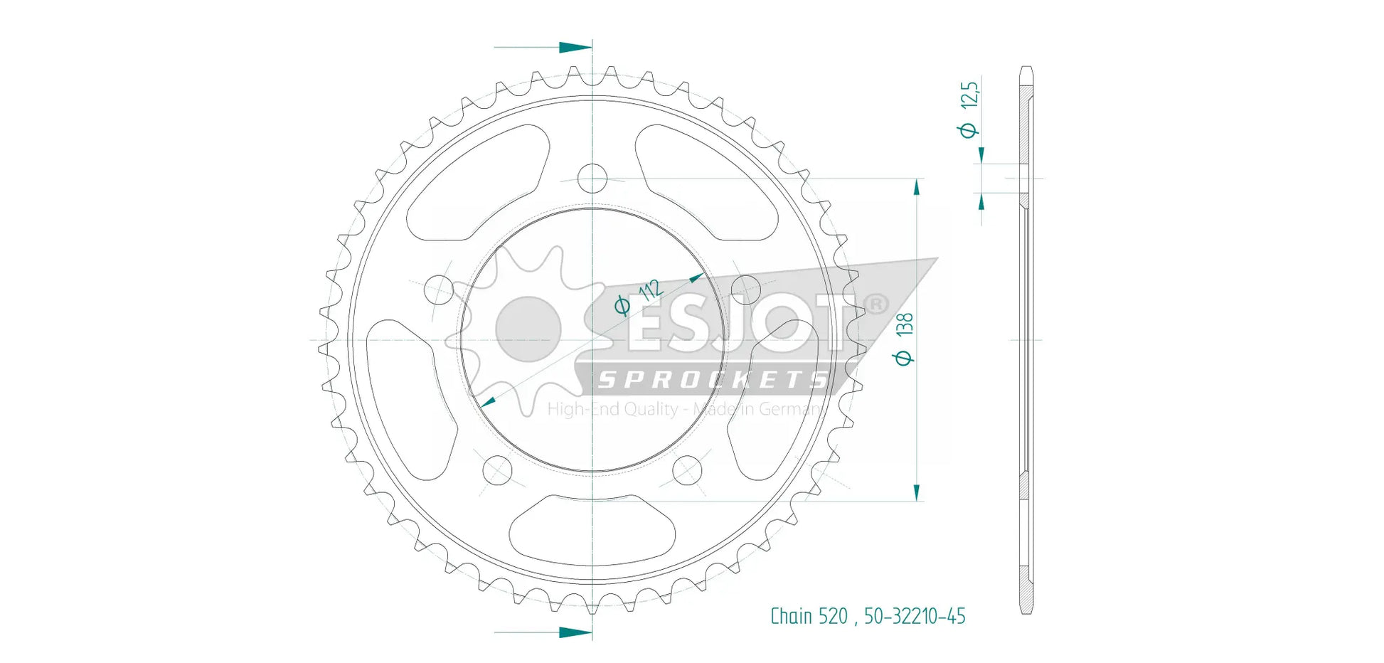 Experience the difference with the Esjot Rear Sprocket, meticulously designed for superior wear resistance. Made from high-quality QSTE460 steel and finished with a specialized surface treatment, this sprocket offers exceptional durability in demanding conditions. The Diamond Cut 2.0 process ensures precise toothing, reducing wear and maximizing power transfer. With concentricity and axial run-out tolerances of less than 0.1 mm, this sprocket guarantees smooth and reliable operation. This rear sprocket is ideal for any motorcycle using a 520 chain and requiring a robust and dependable component. Upgrade to Esjot and feel the difference in quality and performance. Proudly 100% Made in Germany, guaranteeing top-tier manufacturing and materials.