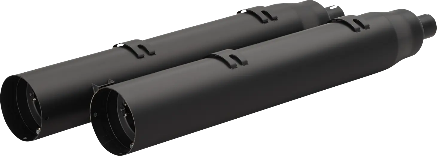 The Khrome Werks War Hammer Mufflers are engineered to provide a significant improvement in sound and performance. Constructed with a robust 16-gauge muffler body and a 2-1/2” perforated core baffle, these mufflers are designed for optimal exhaust flow and a deep, resonant tone. The black finish adds a sleek, custom look to your motorcycle. Designed for easy installation, these mufflers offer a direct bolt-on replacement for your stock mufflers, allowing you to quickly upgrade your bike's aesthetics and sound. Enhance your riding experience with the aggressive sound and quality craftsmanship of Khrome Werks War Hammer Mufflers. These mufflers provide the perfect combination of style, performance, and durability. Made in the U.S.A.