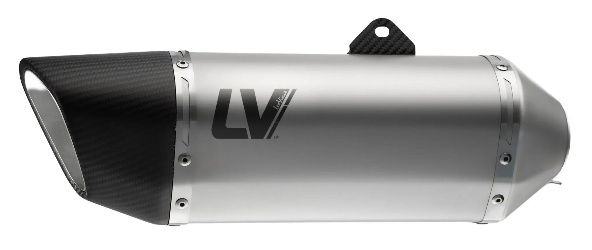 The LV-14R muffler features a specially formulated, high thermal resistance packing material meticulously hand-assembled around a straight-through internal muffler core that incorporates a removable db-killer. This design not only produces the signature LeoVince sound but also ensures optimal performance. All TIG welds are expertly handcrafted by skilled technicians, guaranteeing the durability and reliability needed for lasting enjoyment. The LV-14R’s titanium look, stainless steel construction, and carbon fiber end cap create a visually striking addition to your bike. Installation is straightforward, providing an immediate upgrade in both sound and style.